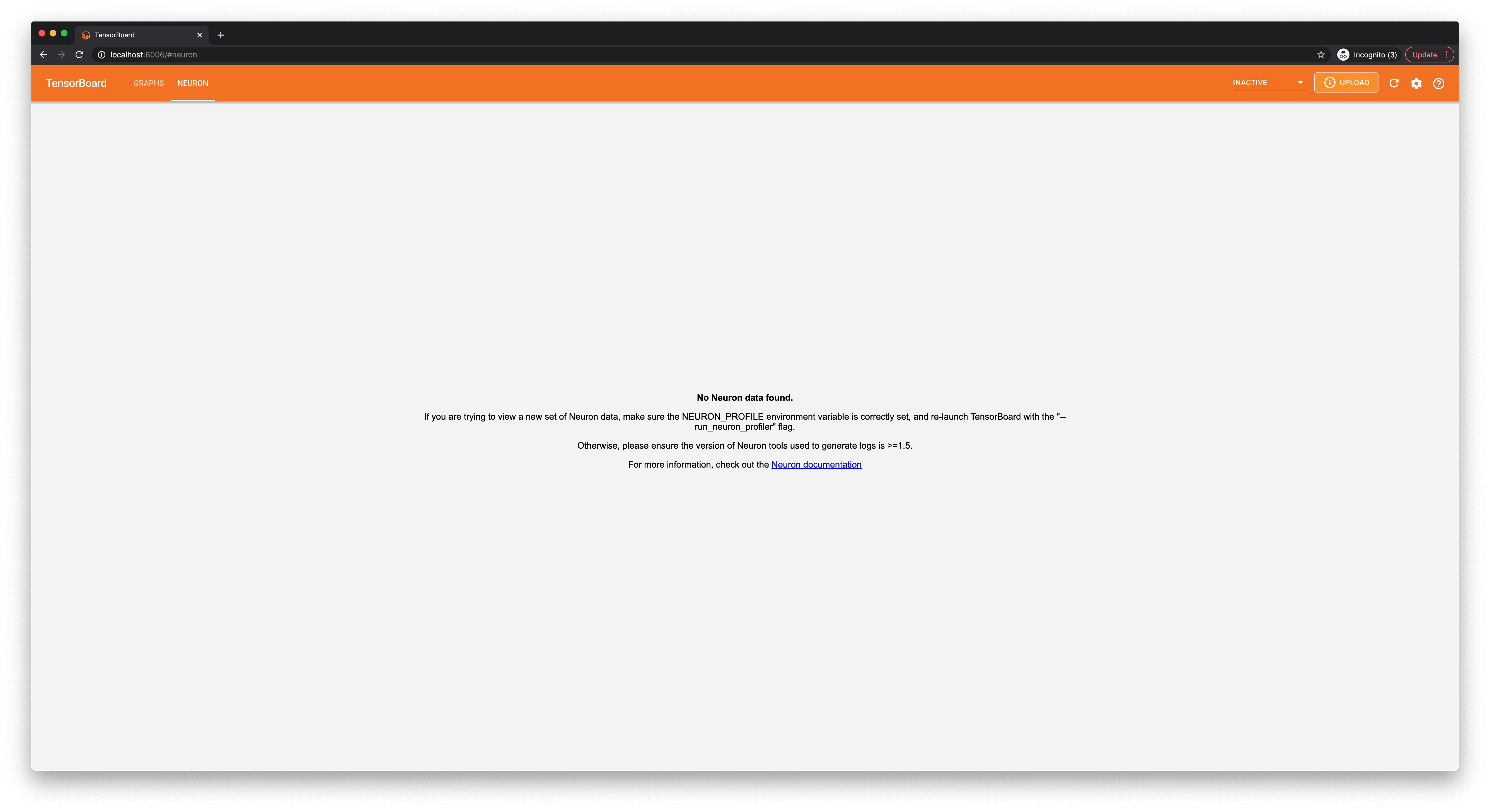 log files used by the Neuron plugin. This can be done when launching TensorBoard