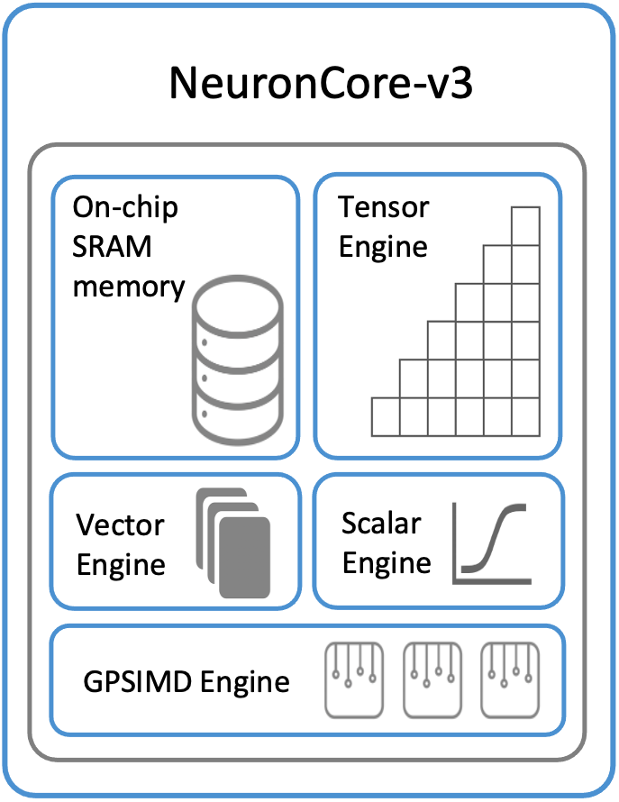 Each NeuronCore-v3 has a total of 28MB of on-chip SRAM. NeuronCore-v3 on-chip SRAM is software-managed to maximize data locality and optimize data prefetch.