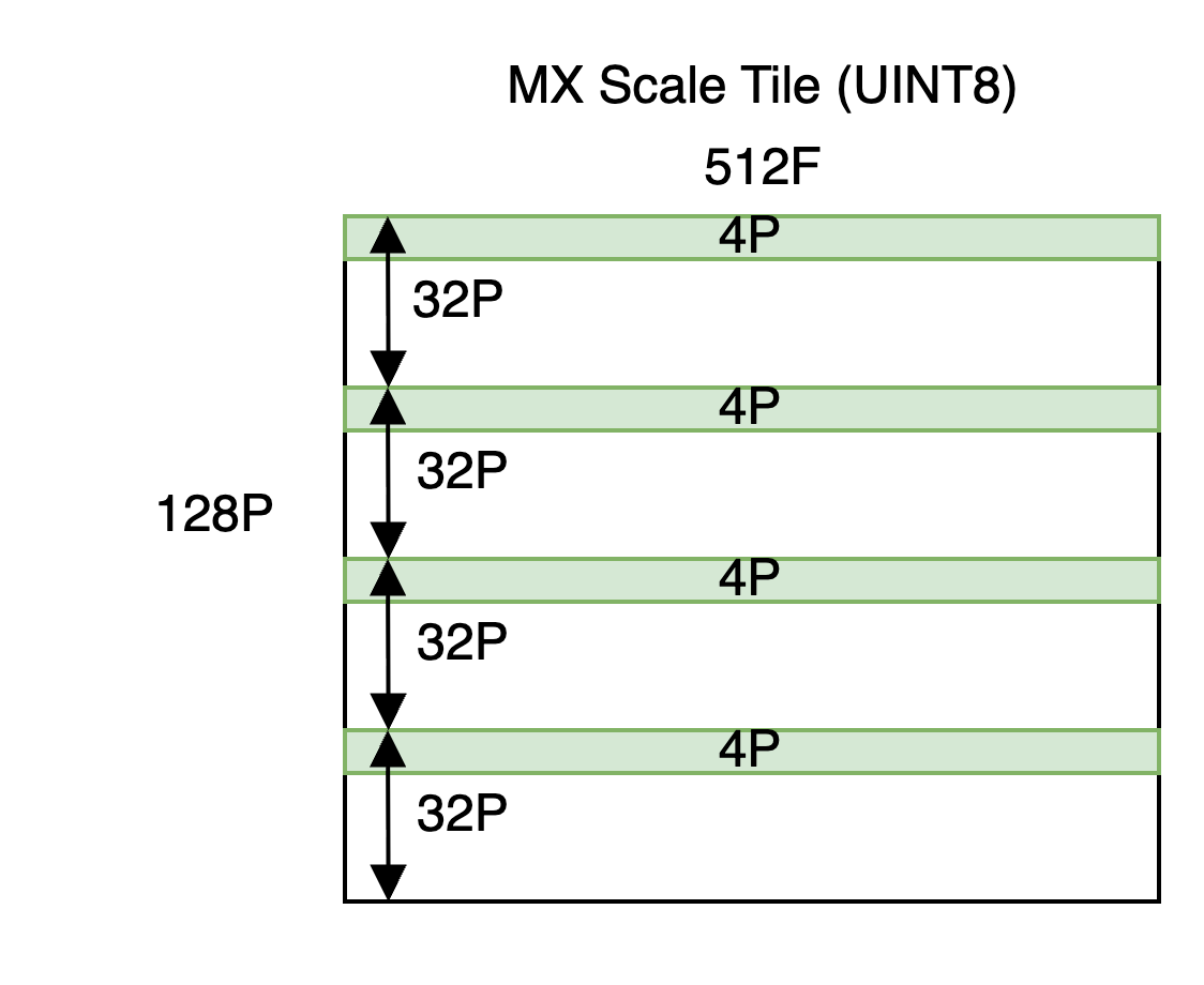 MX Quantized Scale = [P//8, F//4] UINT8 in SBUF