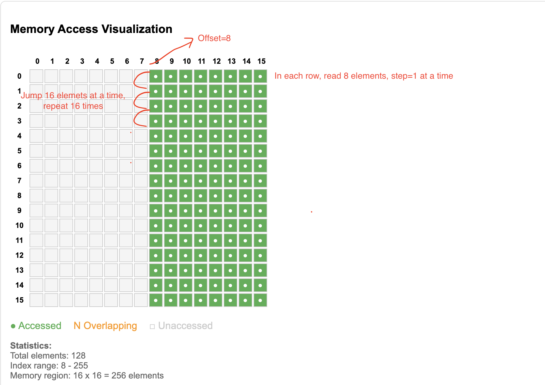 access = t.ap(pattern=[[16, 16], [1, 8]], offset=8)